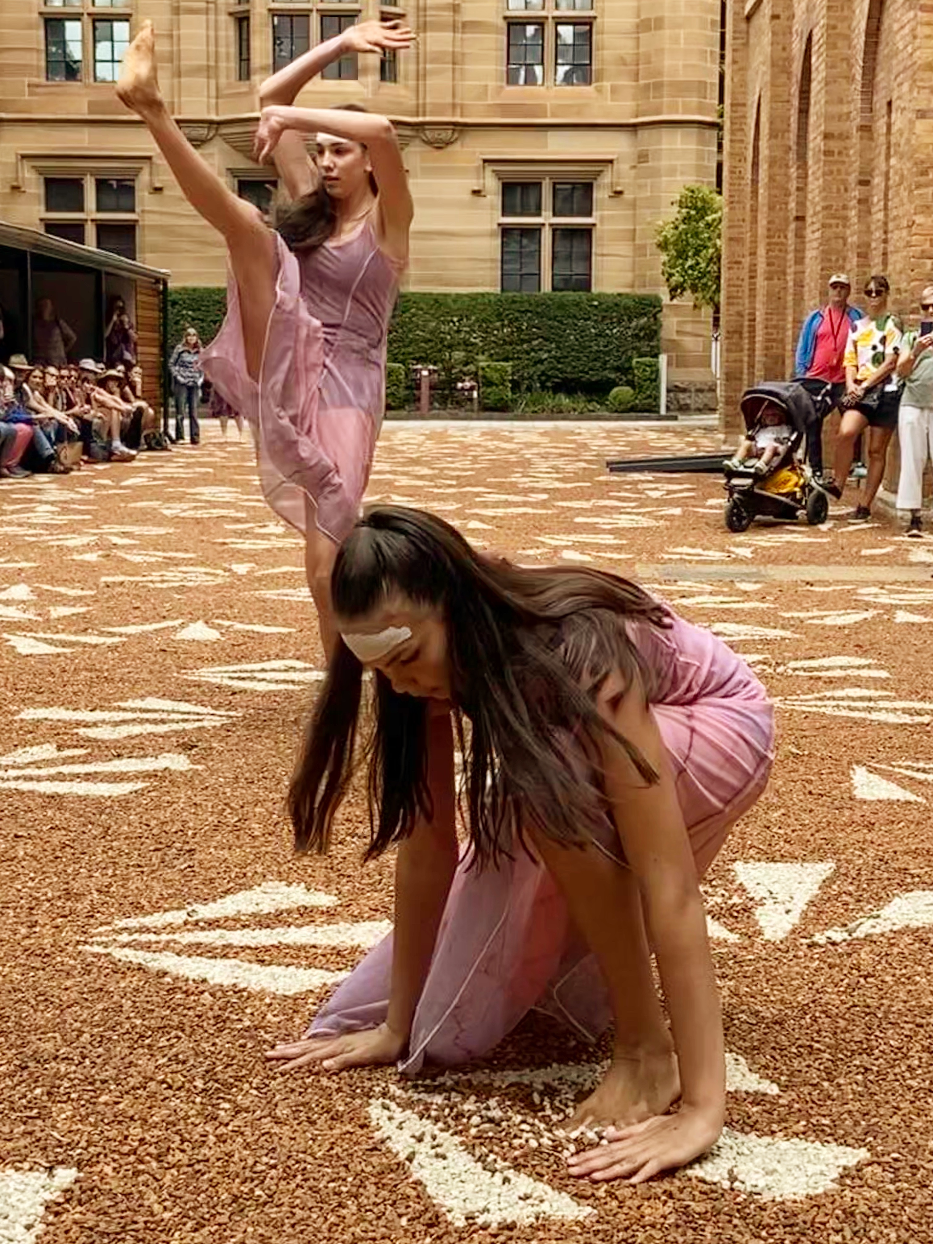 I timed my visit to coincide with a traditional clearing dance from Lucy and Lowanna Murray, two young Wiradjuri women from Cowra (where the stones for Jones’ artwork were sourced) and the official Welcome to Country from Uncle Allen, ceremonially opening the barracks to the public.